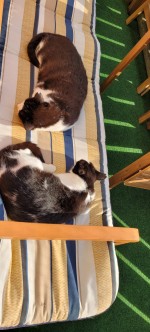 The photo shows Pandy and Tommy after lunch. A midday nap is a must :-)